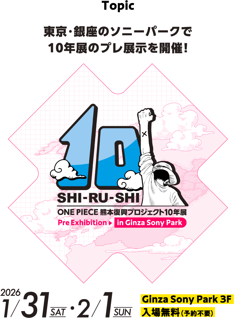 「ONE PIECE」と清和文楽がコラボした「超馴鹿船出冬桜」のライブデモンストレーションや、麦わらの一味像10体と熊本の風景を体感するスペシャルムービーの上映等、熊本県で展開中の復興プロジェクトを体感する2日間です。